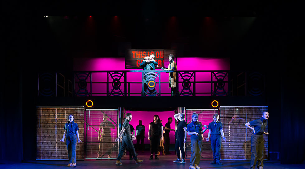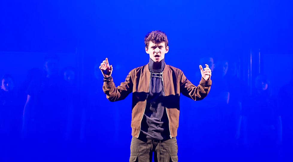 'Crowd' was devised by 50 YEP actors. It follows three main plots in a world run by an autocratic government. A society without freedom and identity. A world where it is illegal to be gay and people are forced to take 'Happy Pills'. Iris listens in at all time, and if you don't obey you get taken away.